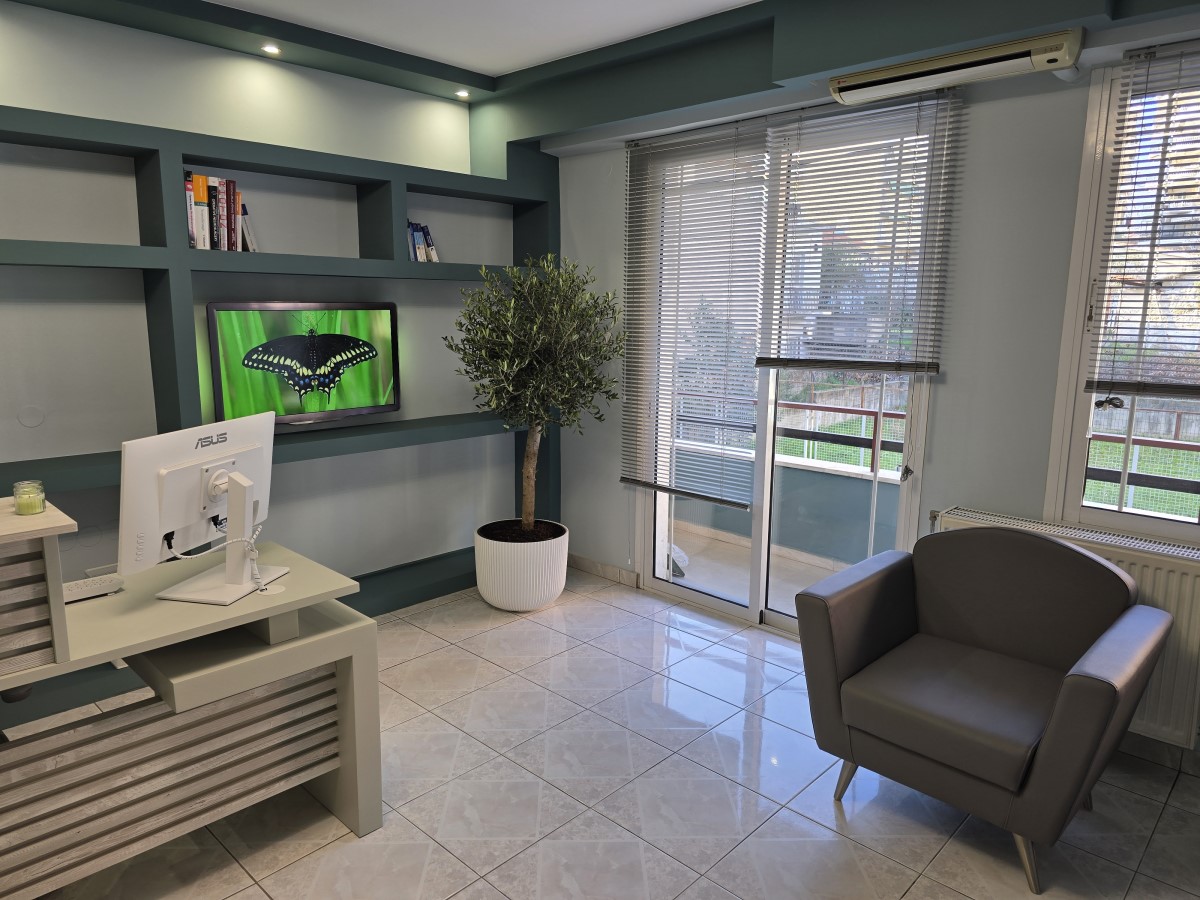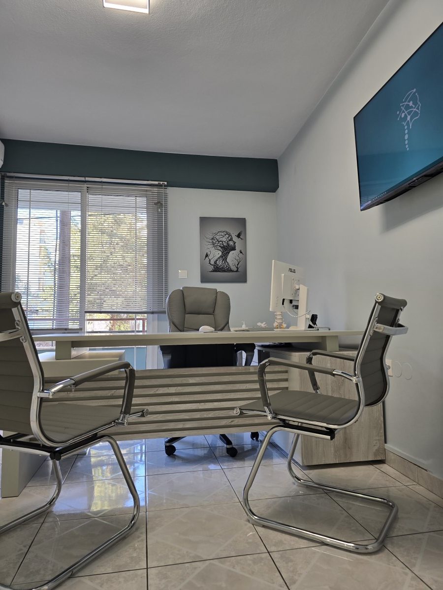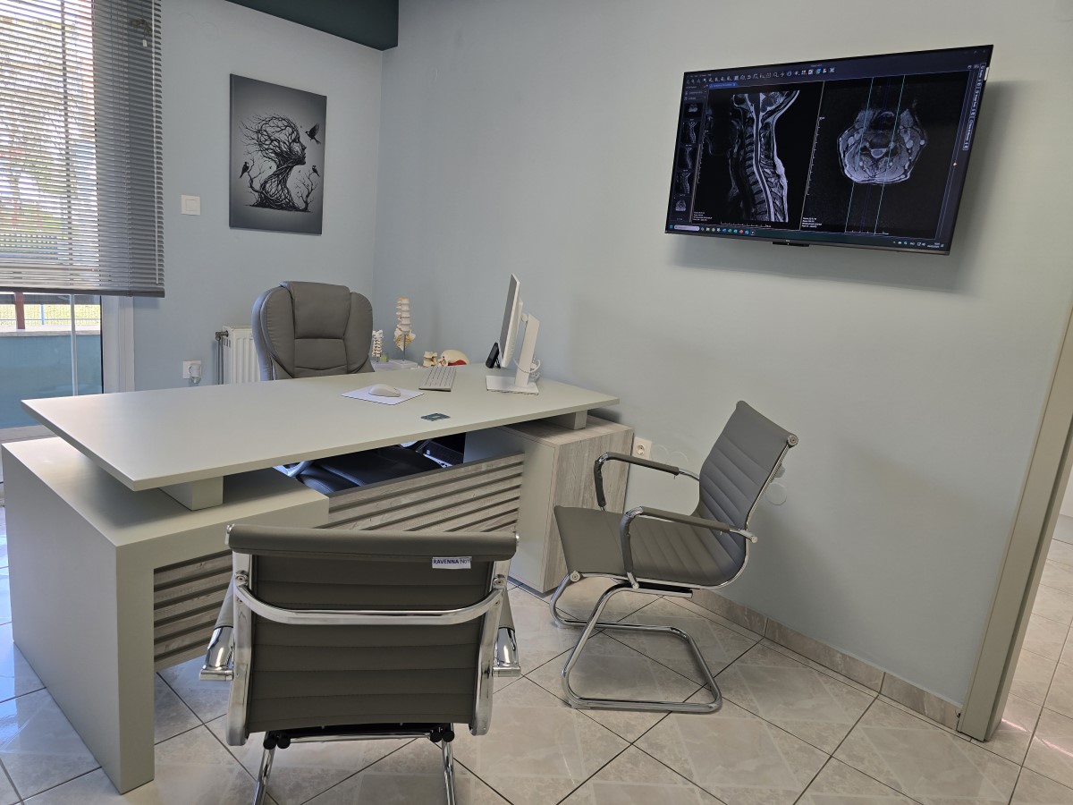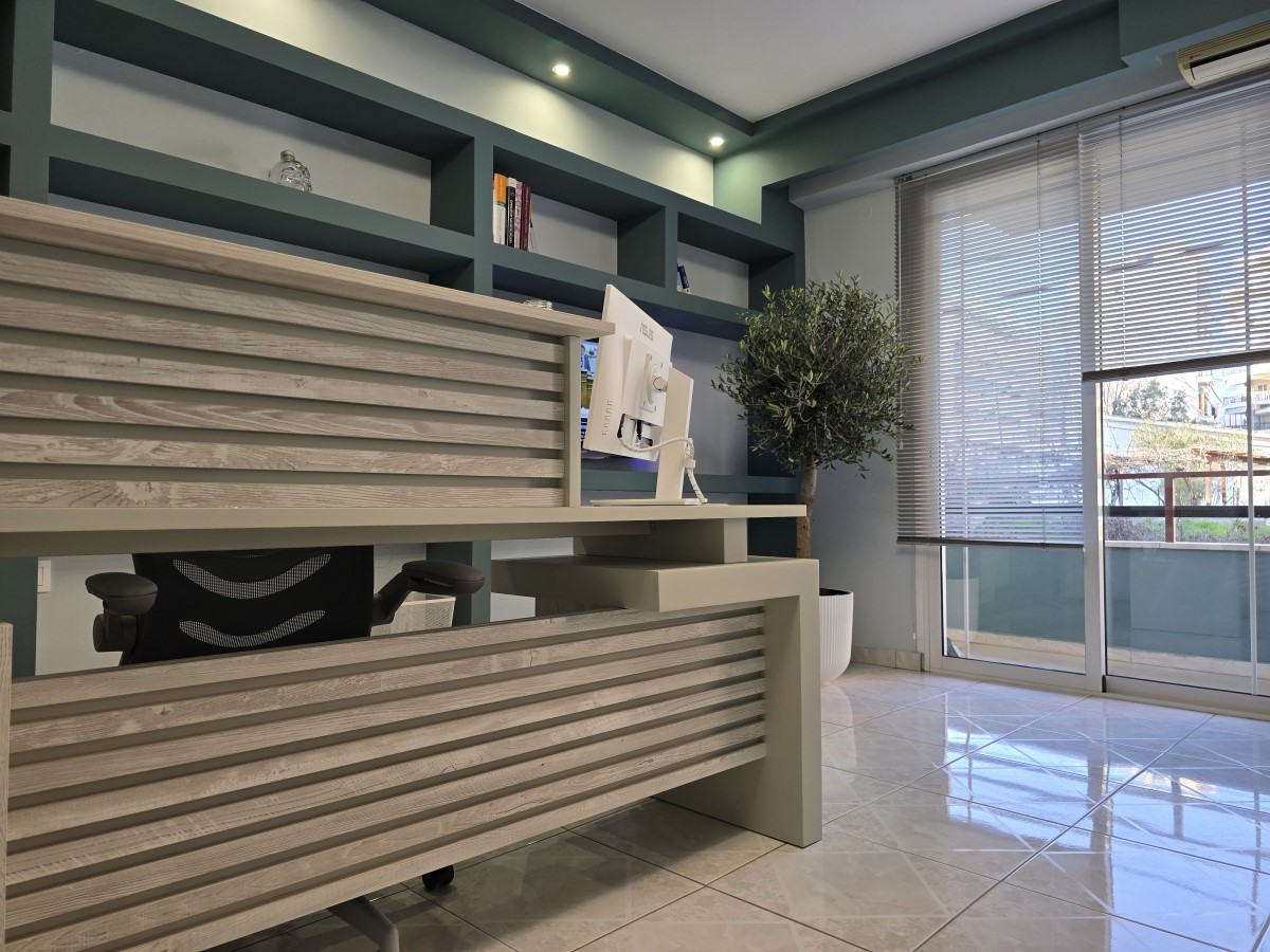 Ο χώρος του Ιατρείου προσπαθεί, μέσω συγκεκριμένων λεπτομερειών και στοιχείων, να δώσει στον επισκέπτη την αίσθηση της σύνδεσης με τη φύση και την ελληνική γη. Με κυρίαρχο χρώμα το πράσινο, αποχρώσεις του εδάφους και του νερού, και συνδυασμό με μια μινιμαλιστική διάθεση, κάθε λεπτομέρεια έχει επιλεχθεί προσεκτικά ώστε να ελαττωθούν τα επίπεδα οποιασδήποτε ανησυχίας του ασθενή με στόχο την από κοινού λύση του ιατρικού του θέματος.